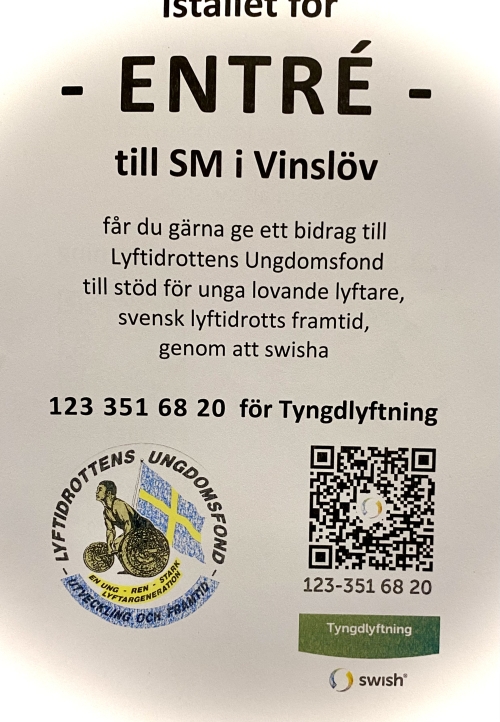 Ett varmt tack till alla som gett bidrag till Ungdomsfonden under SM i Vinslöv! Med dessa bidrag kommer vi att kunna fortsätta att dela ut stipendier till unga och lovande lyftare, de är som är lyftsportens framtid.