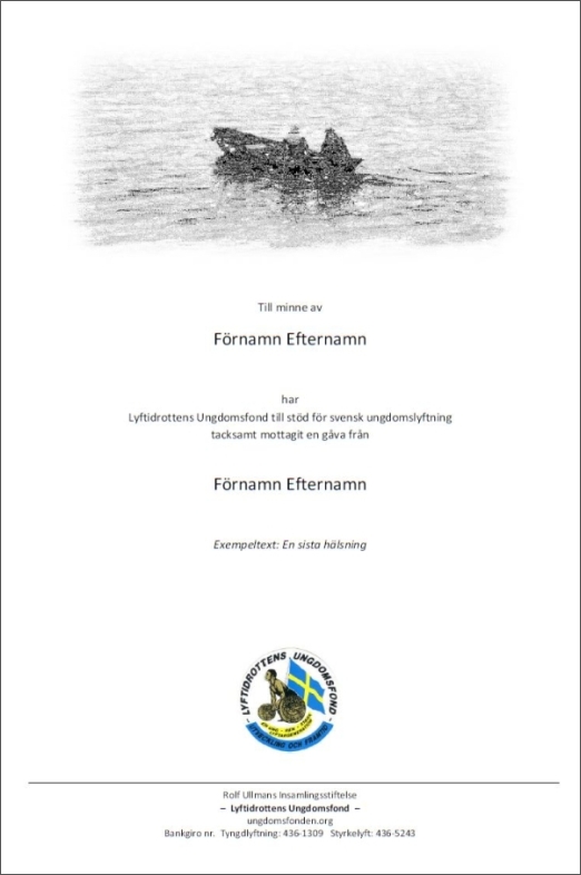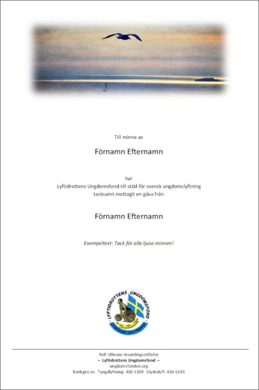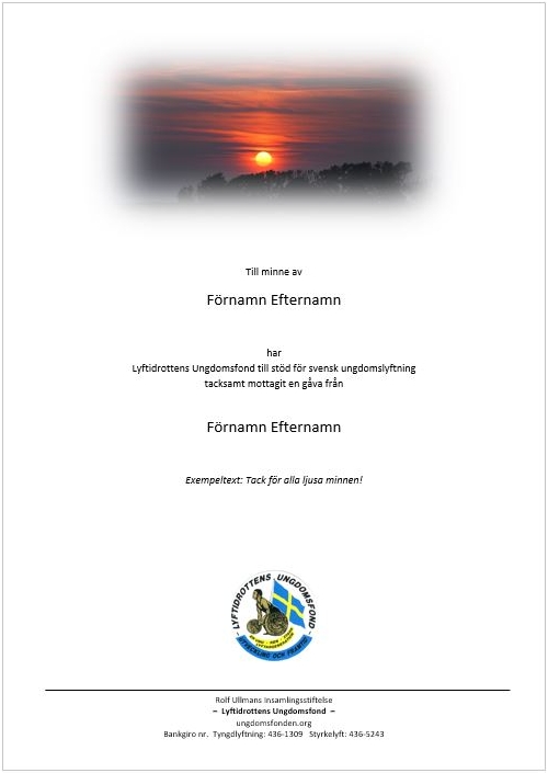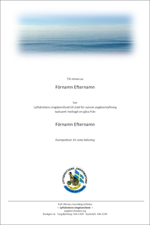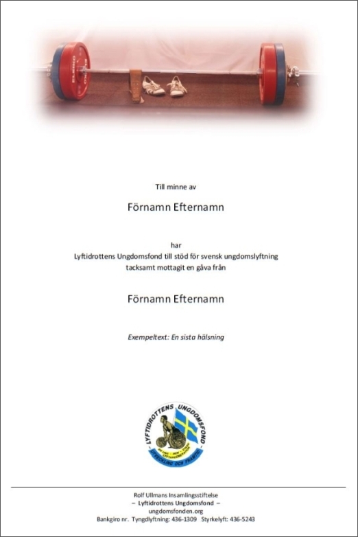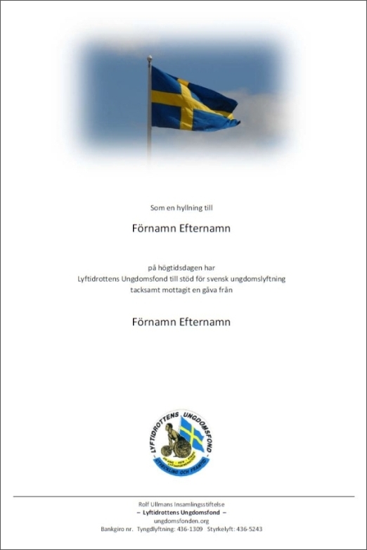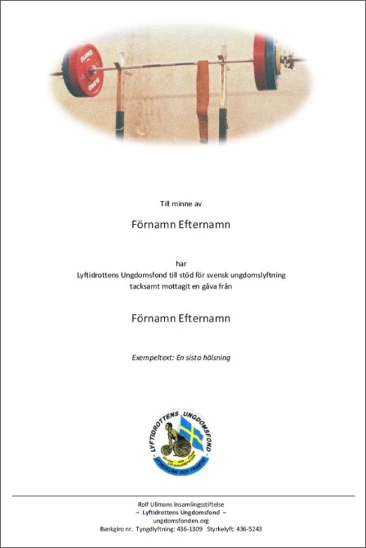 En gåva till Lyftidrottens Ungdomsfond kan Du ge av olika anledningar. Alla gåvor, stora som små, är alltid ett välkommet tillskott som främjar ungdomslyftningen inom svensk tyngdlyftning och styrkelyft.